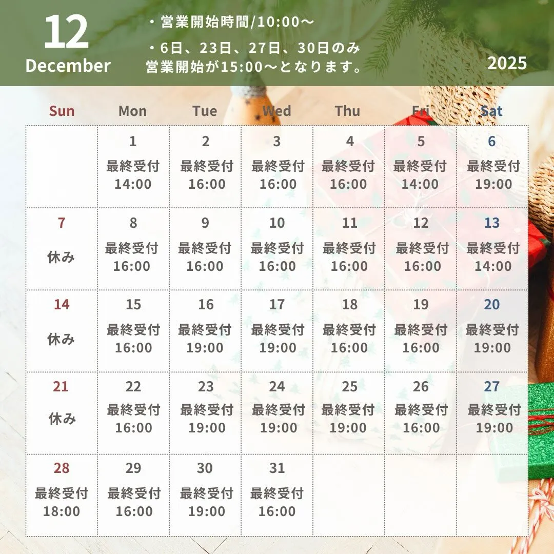 ☃️【12月の営業日について】🎄